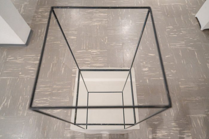 Die Spiegelung erzeugt eine räumliche Irritation der visuellen Erscheinung. Das Wechselspiel vom Realen zum Spiegelbild ergibt eine besondere Darstellungsmöglichkeit der minimalistischen Skulptur; durch eine Spiegelung wird die Realität verändert. Die Werke werden in unserer Wahrnehmung schwebend, werden haltlos, haben keine Bindung zur Ebene, auf der sie stehen.