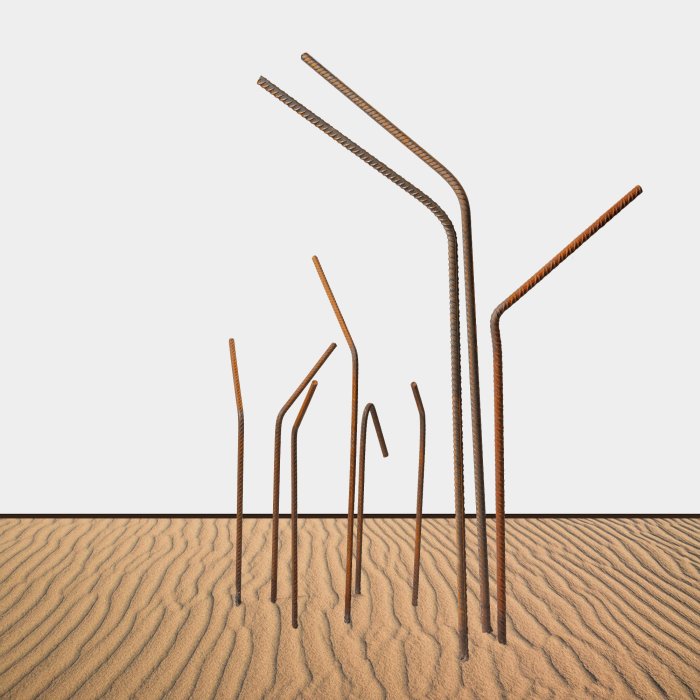 Stäbe aus verrostetem Monierstahl sind zufällig nebeneinander gestellt und ergeben ein ästhetisches Objekt aus der Verbindung von Mathematik und Kunst. Bei dieser Skulptur, verarbeitet mit Hilfe von Fraktaler Geometrie (gleichmäßiges Muster - selbstähnlich) und Goldenen Schnitt (harmonisches Teilungsverhältnis). Der Winkel beträgt 52,2 (Breitengrad von Emsbüren).